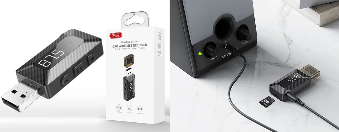 Модулятор XO BCC16 — компактний аудіоресивер, який допоможе розширити функціонал автомобільної аудіосистеми. Він надасть можливість програвати музичні треки з карти пам'яті, телефонувати або прослуховувати музику зі смартфона без дротів через акустику авто, транслюючи аудіосигнал на обрану частоту штатного FM-приймача.