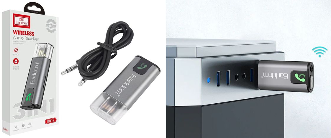 Bluetooth аудіоресивер Earldom ET-BR12 BT5.3/USB/3,5mm/TF Card (Чорний)Немає в наявності