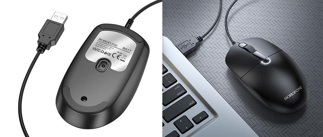 Borofone BG17 - це ергономічна і функціональна дротова миша, яка ідеально підходить для щоденної роботи в офісі, вдома або в освітньому середовищі. Легка, компактна та надійна, вона забезпечує точність та комфорт при тривалому використанні.